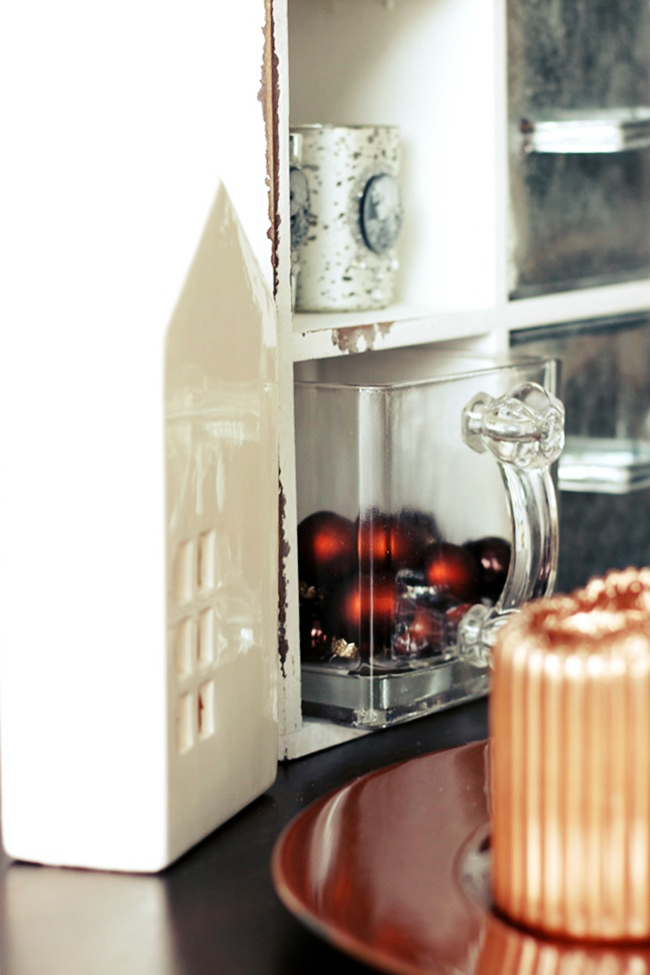 Bevor es zu spät dafür wird und es schon wieder Frühling wird, zeige ich euch noch etwas winterliche Deko, wie sie bei meinen Eltern im Haus zu finden ist. Meine Mutter hat ja keinen Blog, aber ich finde diese kleine Zusammenstellung so hübsch, dass ich sie euch nicht vorenthalten will. Die Kerzen waren auch gleichzeitig der Adventskranz.